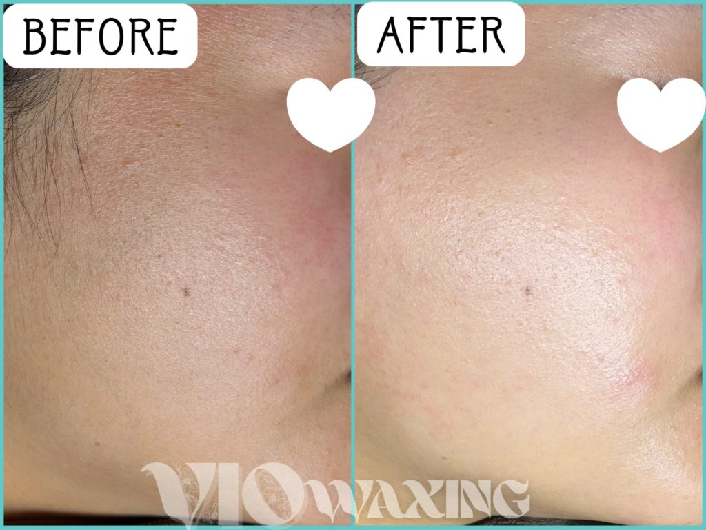 照明の関係で明るく見えるのもありますが、ワックスがしっかり薄い産毛や角質をキャッチしていました。
