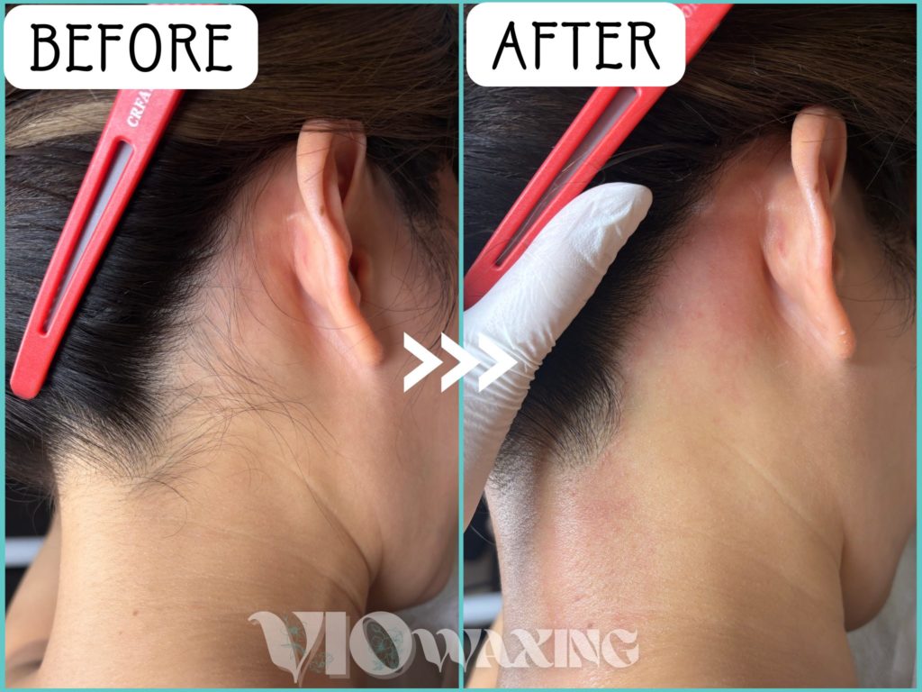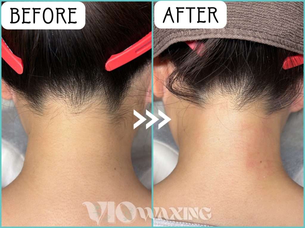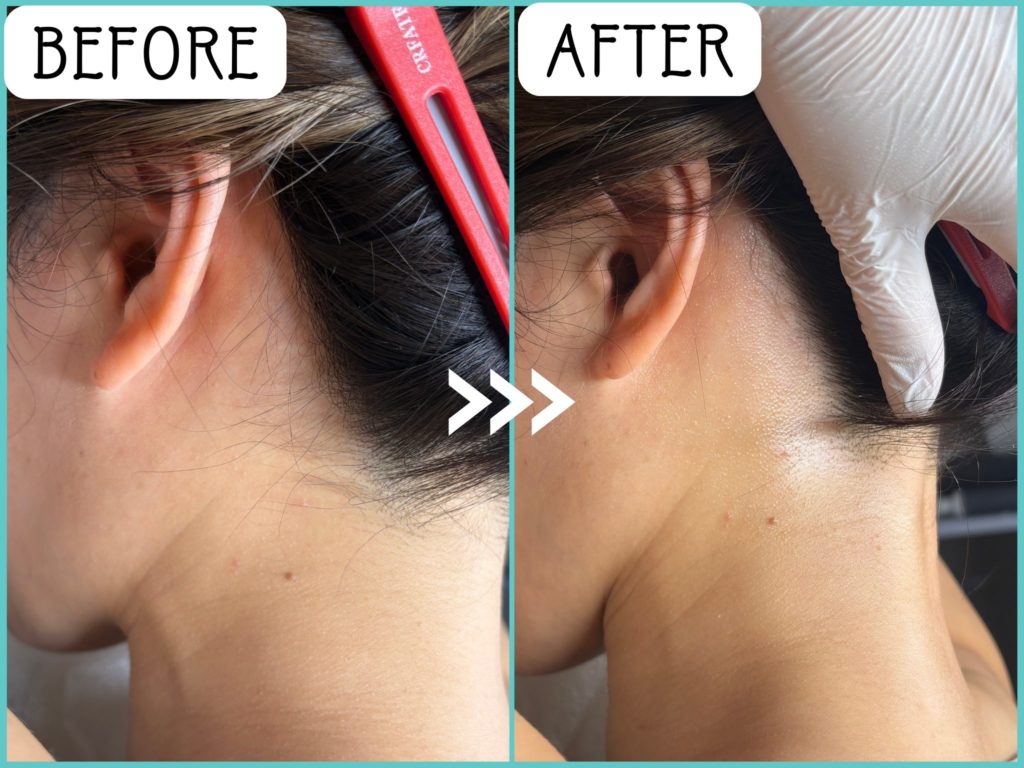 お客様のBefore-Afterとともに、【背中全体(耳の後ろ~うなじ含む)】の施術の流れをご紹介します。