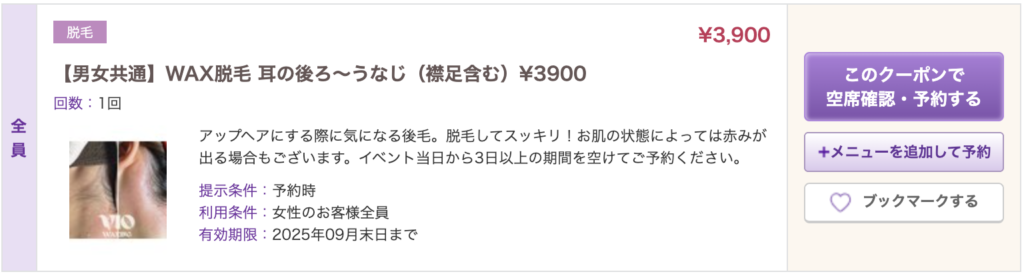 当サロンの女性メニュー【うなじ〜耳の後ろ】が、現在成人式前のレディたちに人気です!